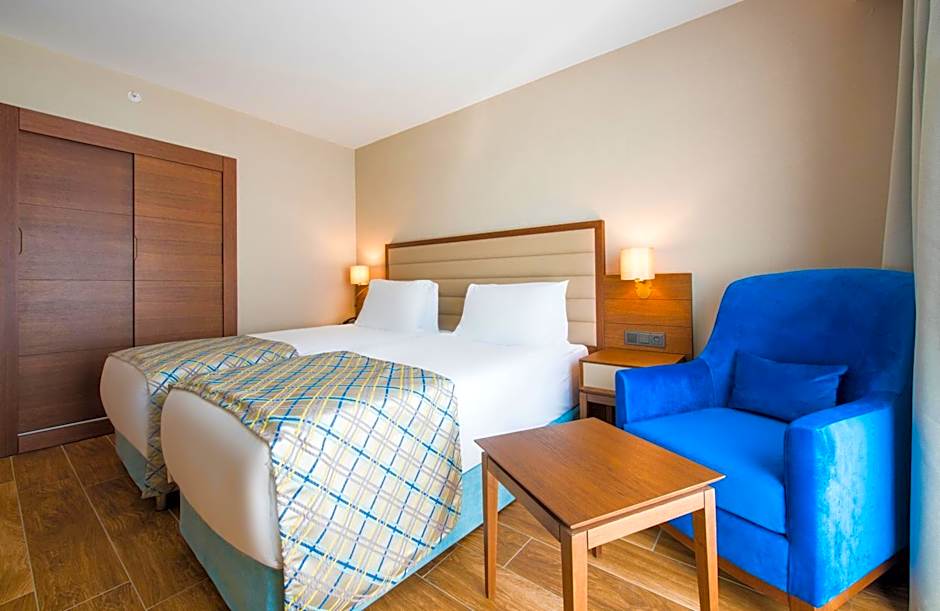 The spacious air-conditioned twin/double room features a flat-screen TV with satellite channels, a mini-bar, a wardrobe, a safe deposit box as well as city views.