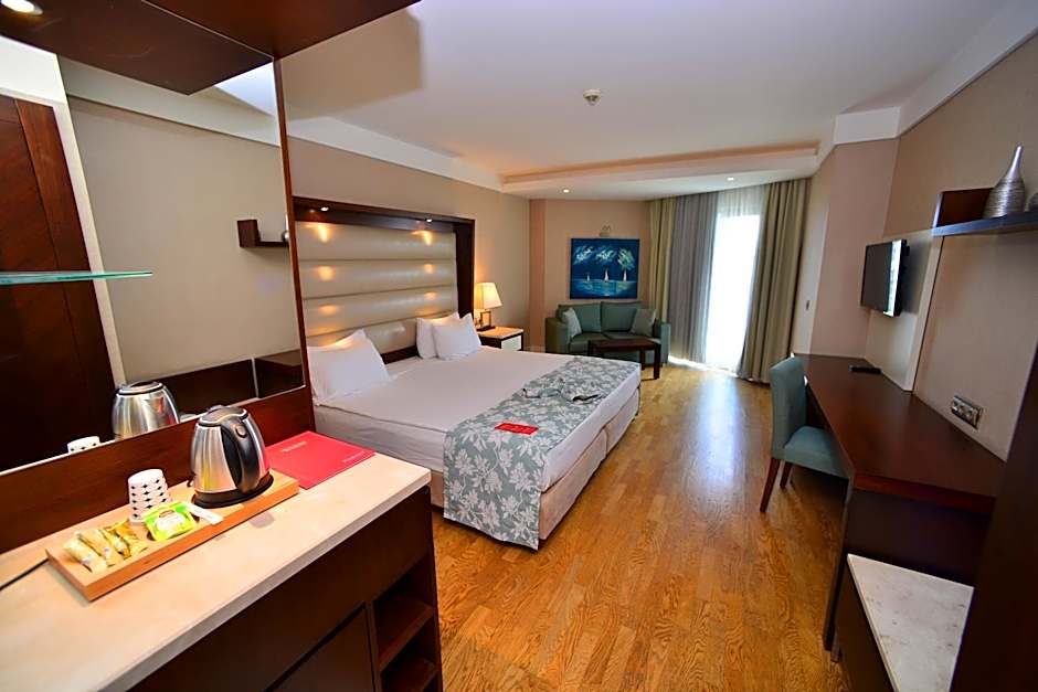The spacious air-conditioned suite features a flat-screen TV with satellite channels, a mini-bar, a wardrobe, a safe deposit box as well as sea views. The unit has 2 beds.